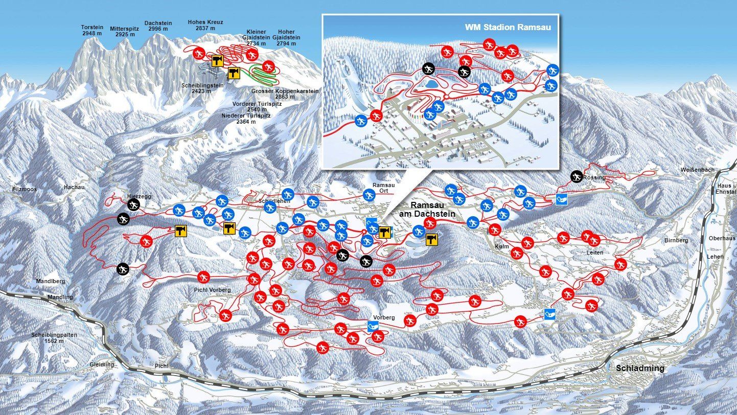 Ramsau am Dachstein is een van de grootste langlaufgebieden in de Alpen en biedt een indrukwekkend loipennetwerk met in totaal 245 kilometer in alle moeilijkheidsgraden. Een bijzonder hoogtepunt is de 3 kilometer lange nachtloipe in het langlaufstadion in Ramsau Ort, die dagelijks tot 21.00 uur verlicht is. Er is een apart langlaufpark voor kinderen en het Nordic X-Park in het World Cup-stadion.
